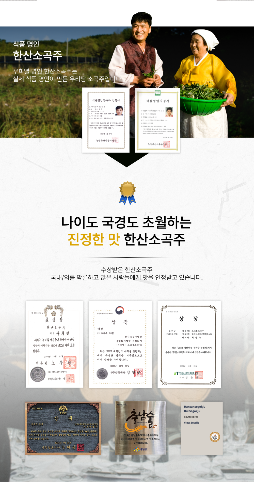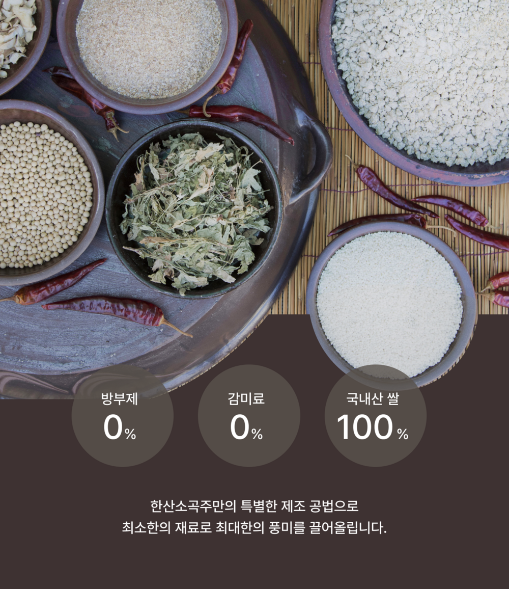 원재료명 및 함량: 찹쌀(국내산), 누룩(국내산),맵쌀(국내산), 들국화, 메주콩, 생강 홍고추