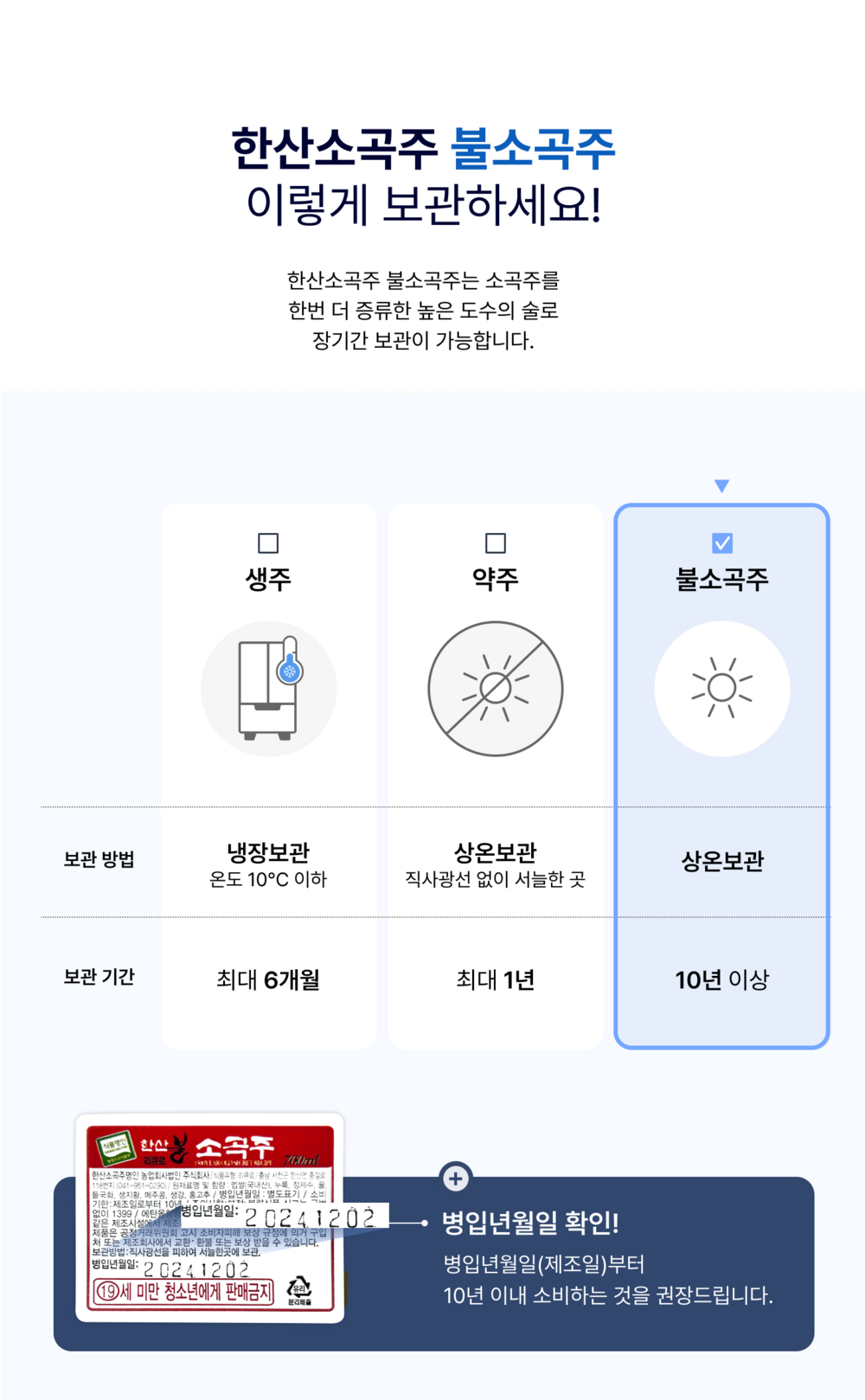병입년월일: 라벨에 별도 표기 보관방법: 직사광선을 피하고 서늘한 곳에 보관