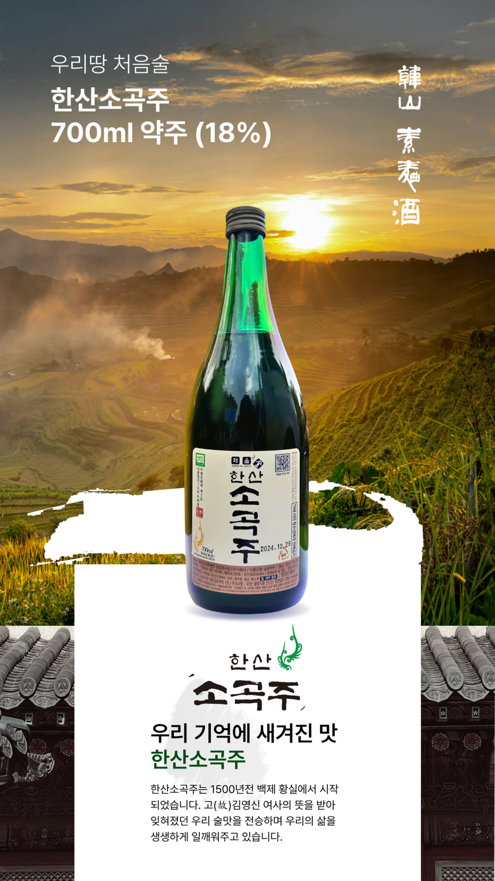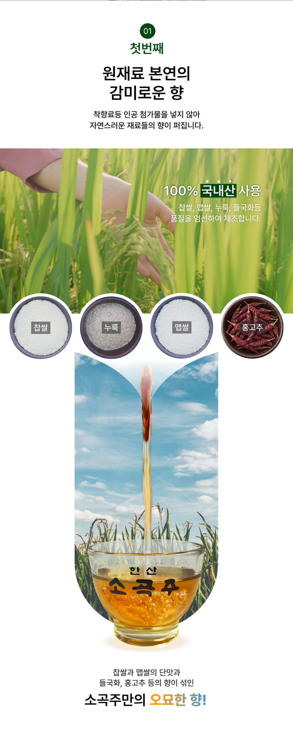 원재료명 및 함량: 찹쌀(국내산), 누룩(국내산),맵쌀(국내산), 들국화, 메주콩, 생강 홍고추
